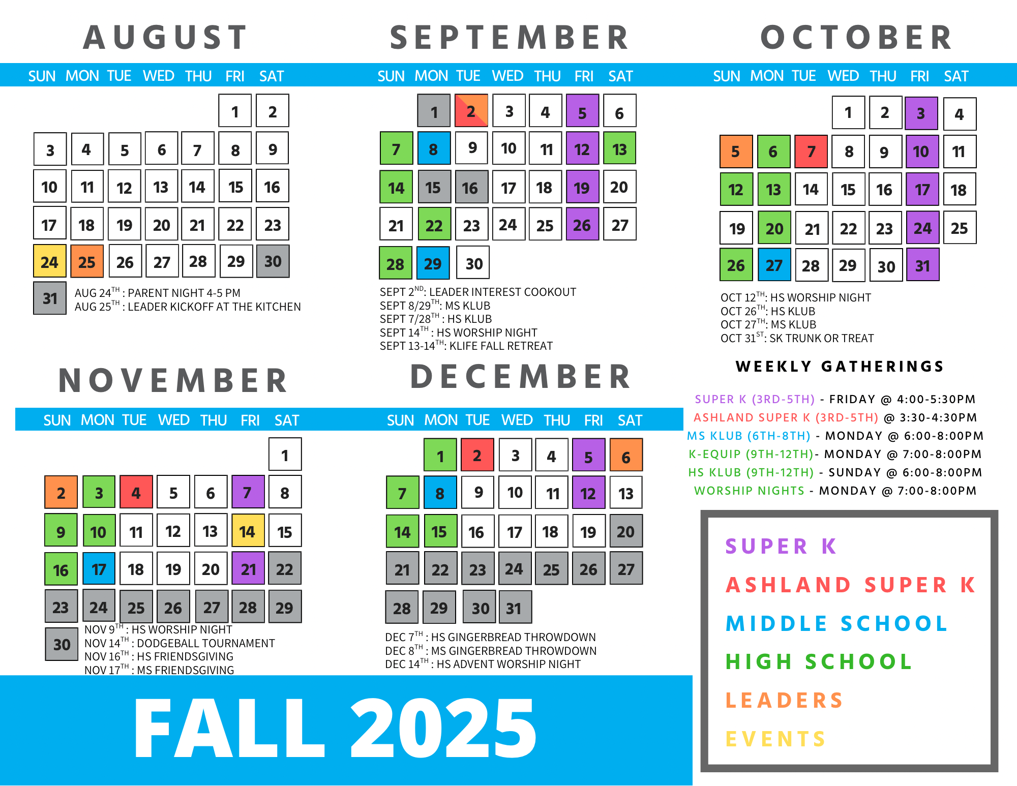 2025 Fall Calendar